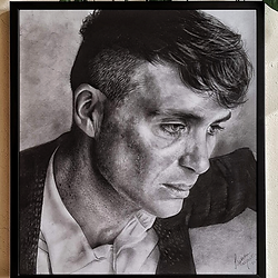 Retrato realista em preto e branco, produzido manualmente com carvão e grafite sobre papel. Cada obra é desenvolvida com atenção aos detalhes para alcançar alto nível de realismo. Especificações: • Técnica: carvão e grafite • Estilo: retrato realista em preto e branco (P&B) • Suporte: papel artístico • Tamanhos: folhas em tamanhos variados • Acabamento: aplicação de verniz para maior durabilidade • Moldura: acompanha moldura com vidro para proteção da obra Observação: Por se tratar de arte autoral feita à mão, cada peça é única e pode apresentar pequenas variações. Ideal para decoração ou presente especial.